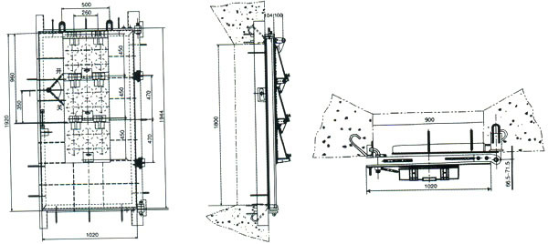 抗沖擊波活門用于井下爆炸材料庫和爆炸材料發(fā)放硐室,起隔離作用,阻止爆炸沖擊波及爆炸產(chǎn)生的火焰、有毒氣體向外巷道擴散,安裝在進風巷道處。通風活門組成為3組,使用時可根據(jù)井下爆炸材料庫需要風量和總回風道負壓值,確定通風活門組數(shù),并可調(diào)節(jié)每組活門的張啟角度進行微調(diào),滿足***通風量,抗沖擊超壓能力為2500Kpa。